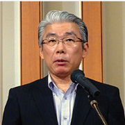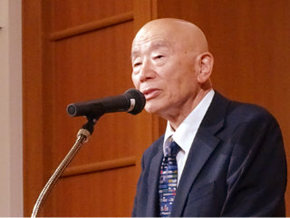 挨拶する髙須博久 前会長