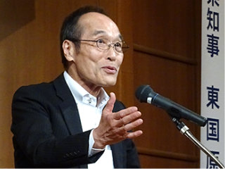 講演する東国原氏